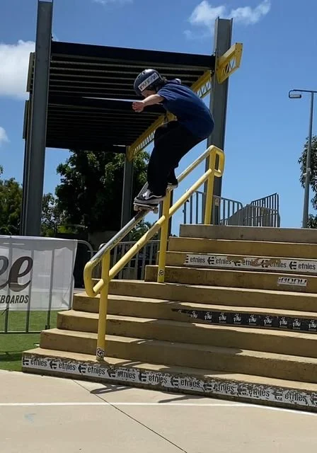 Tech wizard and Dicky local Eli Waterson is turning eyes these days with his heavily technical tricks way beyond his age. Without hesitation he board slid the 9 stair handrail last year and who knows what he’s cooking up this year. The past year he has been coached by Tommy Fynn alongside some of Queensland’s best young and up-and-coming talents. Quite a few sponsors have come on board to support Eli and his skateboarding, which is great to see.